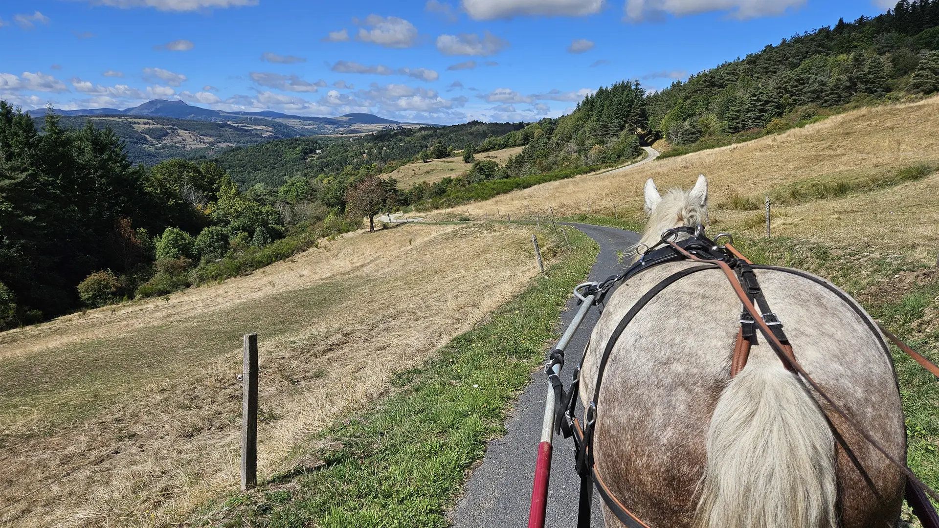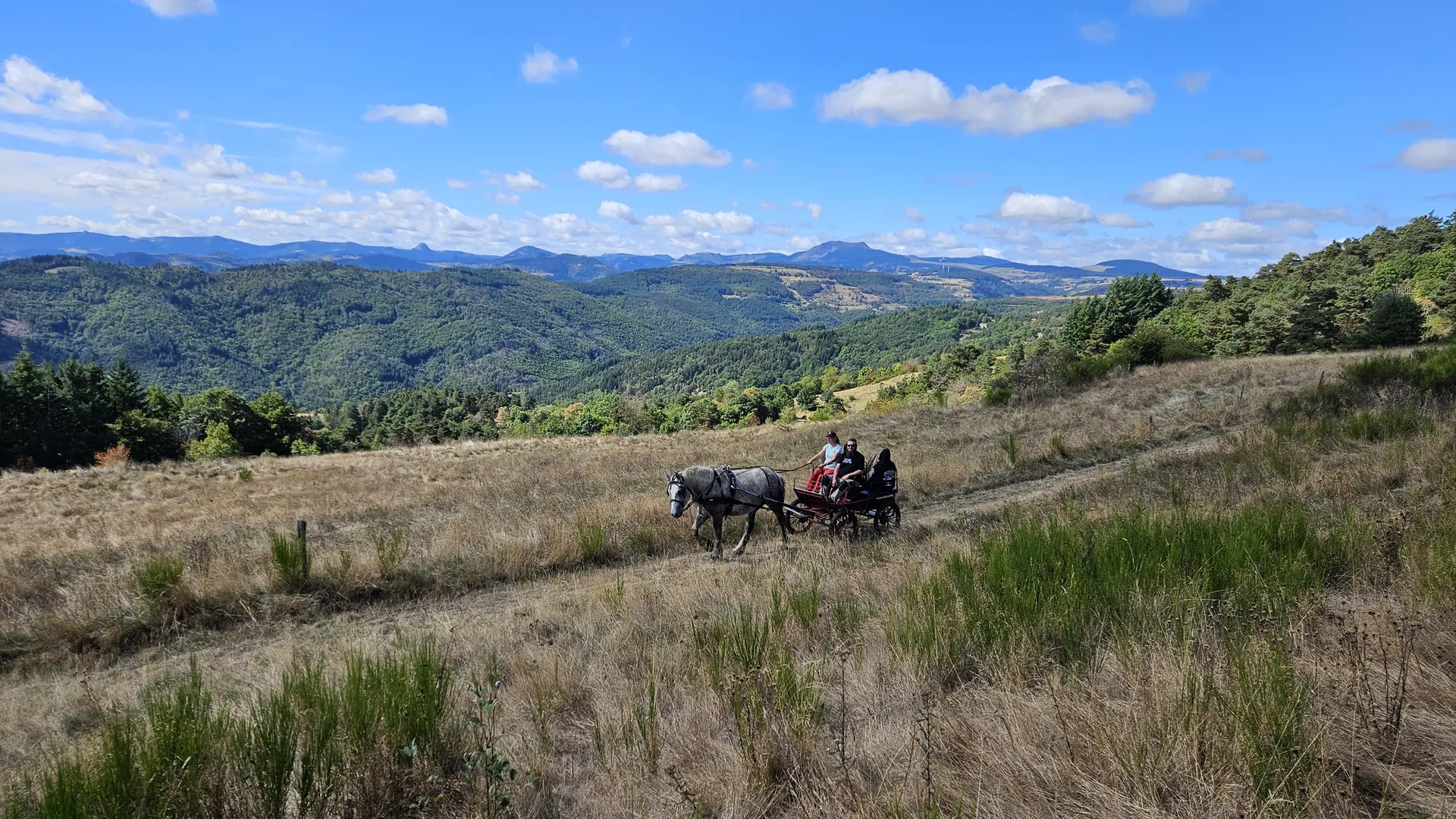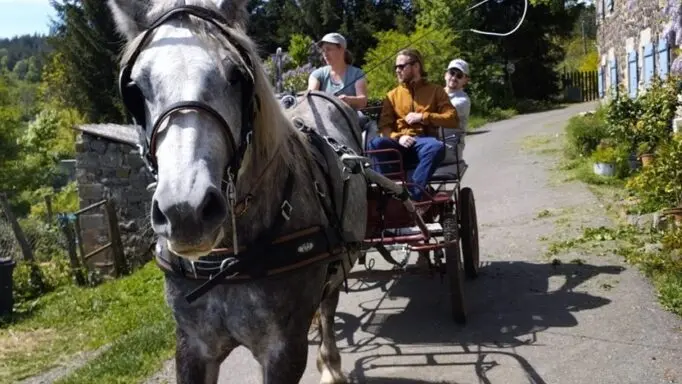 En famille, entre amis ou en amoureux, laissez-vous conduire dans une calèche privatisée. Confortablement installé , en compagnie d’Ingrid, meneuse diplômée, et de Ladie, jument percheronne vous découvrirez nos paysages avec vues sur les monts ardéchois.
