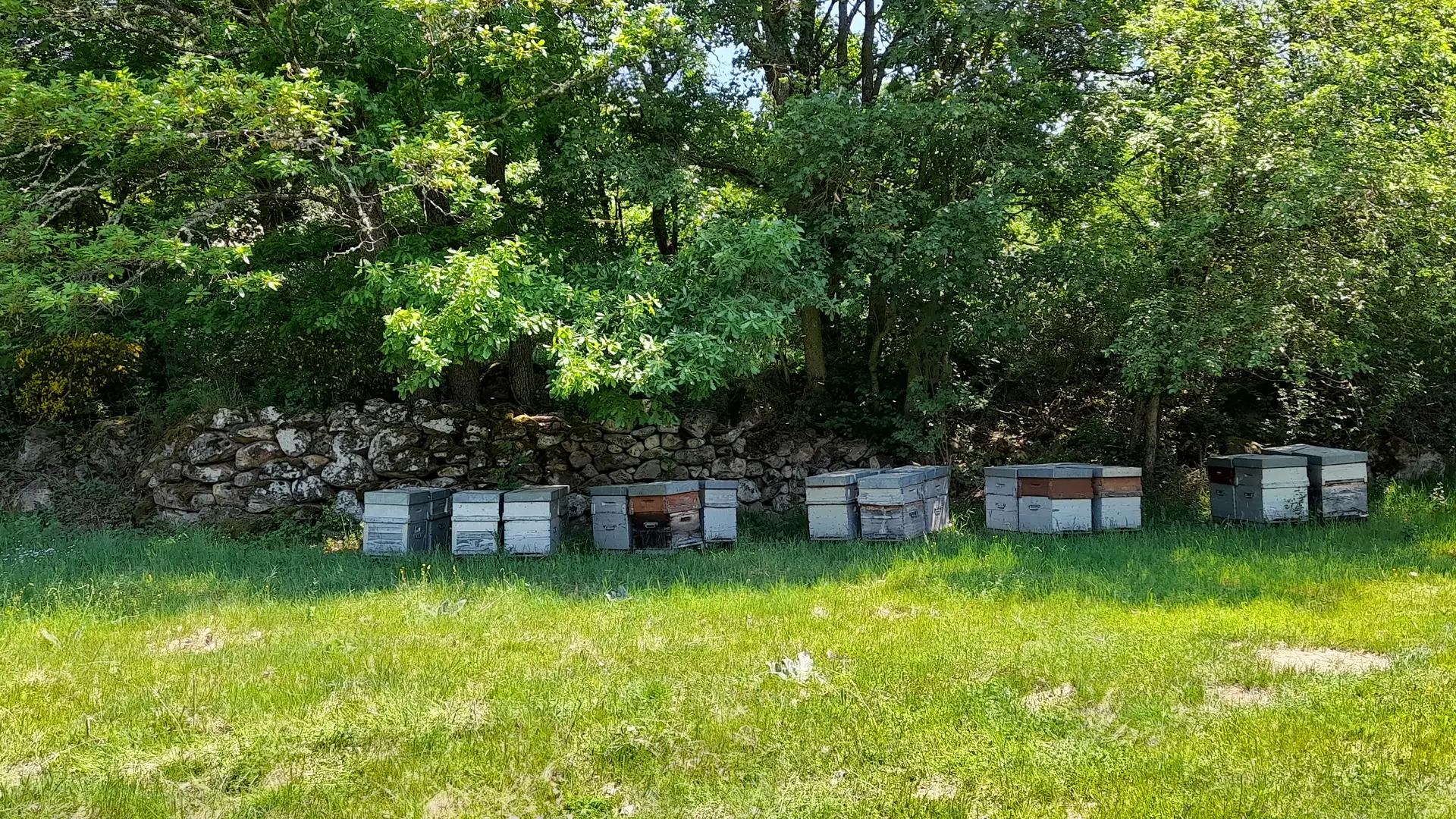 Kévin, son conjoint, l'a rejoint en 2022 avec un élevage d'abeilles, également labellisé AB. Il pratique une apiculture extensive et transhumante, avec des déplacements vers les départements voisins afin de produire une gamme de miels variés : acacia, châtaignier, lavande, sapin...L'été les abeilles profitent des beaux jours sur le plateau afin de profiter des prairies pour produire un miel de montagne toutes fleurs. Kévin transforme une partie de son miel en nougat, pains d'épices, bonbons et produit également du pollen et de la propolis. La vente se fait principalement en vente directe : à la ferme, en AMAP et au marché du Chambon sur Lignon.