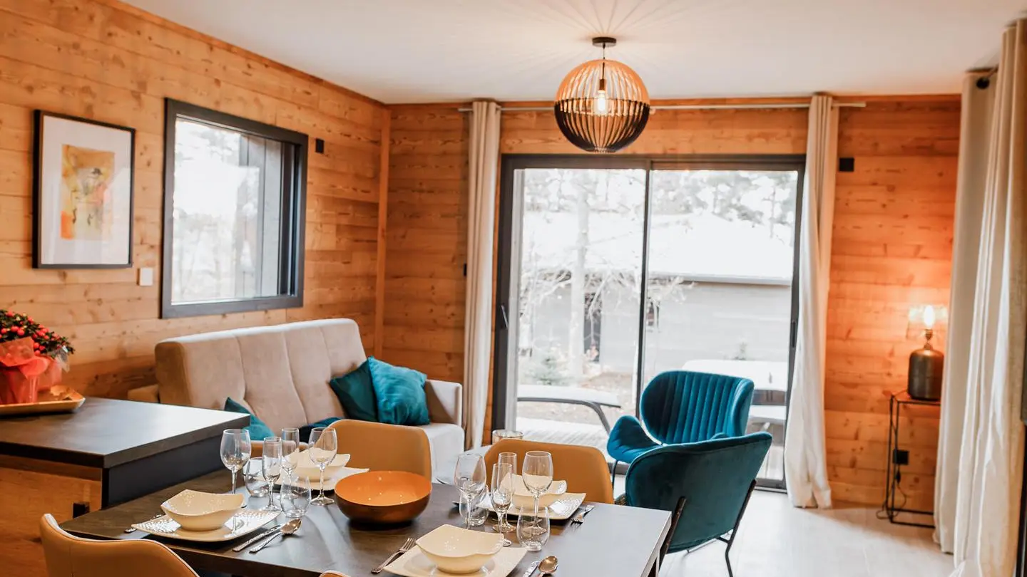 Chalet de 57 m2 pour 2 adultes et 2 enfants, communiquant avec le chalet Ceneuil si souhaité.