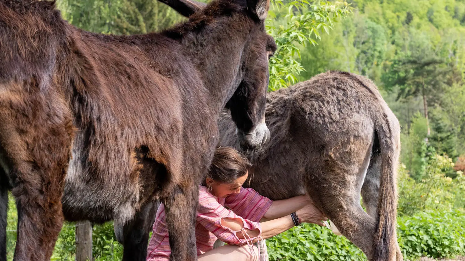 Depuis 18 ans, Karen transforme le précieux lait de ses ânesses en de magnifiques savons artisanaux. Partez à la rencontre de sa ferme, de ses animaux et notamment de ses ânesses à Tence !